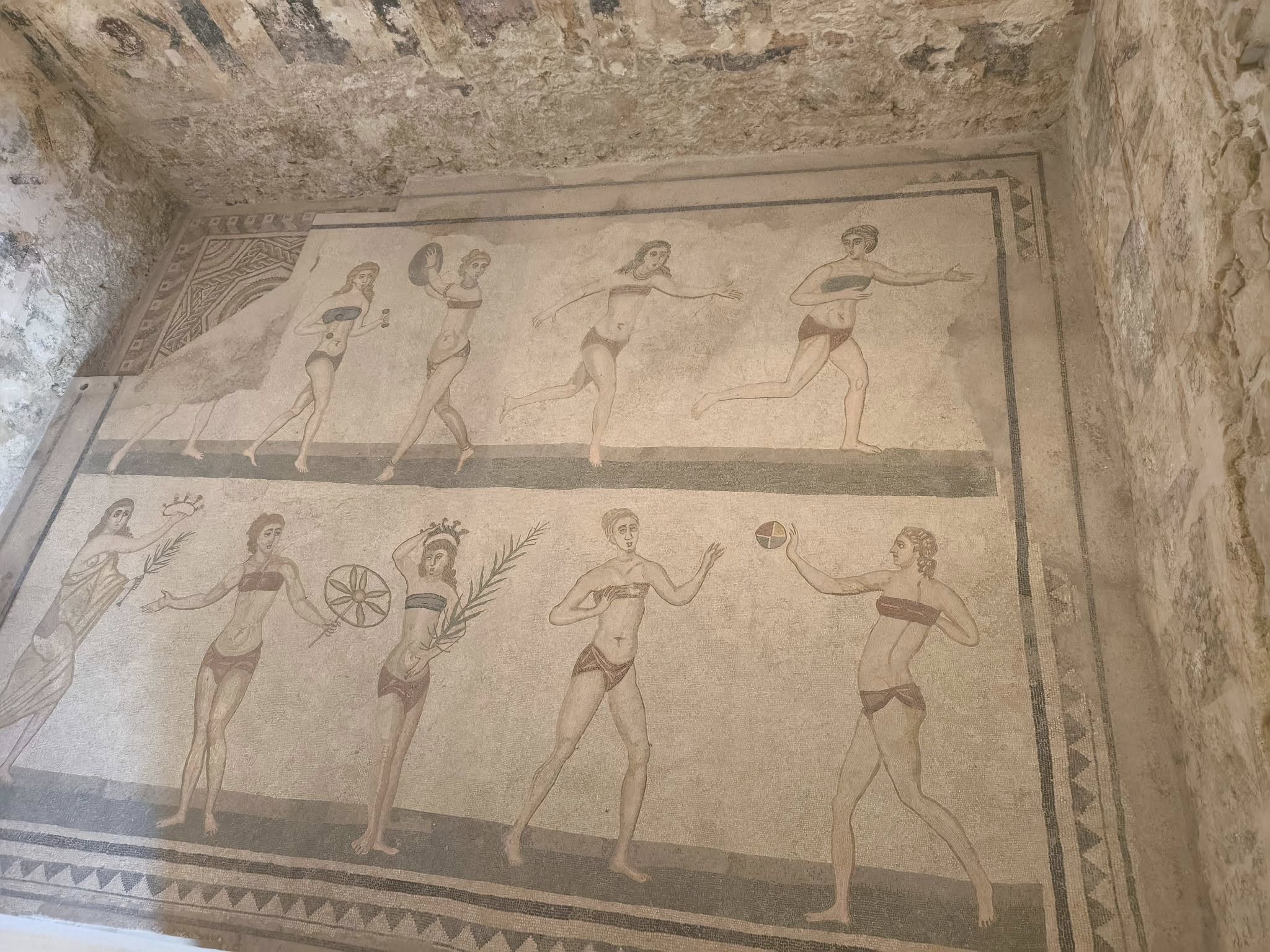 2. Villa Romana del Casale: Nachází se poblíž města Piazza Armerina a obsahuje nejbohatší a nejrozsáhlejší sbírku římských mozaik na světě, pocházejících ze 4. století našeho letopočtu. Zde uvidíte kroniku lidstva v mozaice. Jak se žilo před 2500 lety, co lidé měli na sobě, co jedli, jak se bavili.