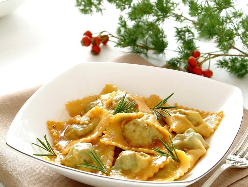- Ravioli – čtverce s náplní často s ricottou a mátou, přelité jen kapkou másla.Nebo plněné špenátem a nebo masem